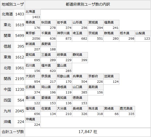 実際にご購入頂いているユーザ様の都道府県ごとの分布データです