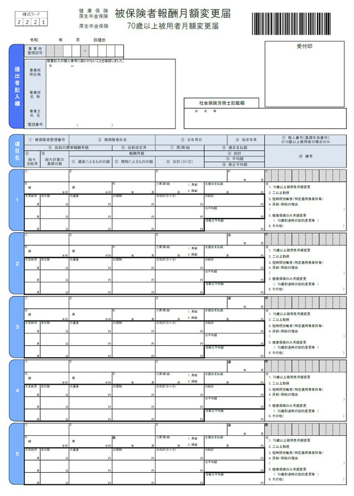 - 健康保険・厚生年金保険 被保険者報酬月額変更届