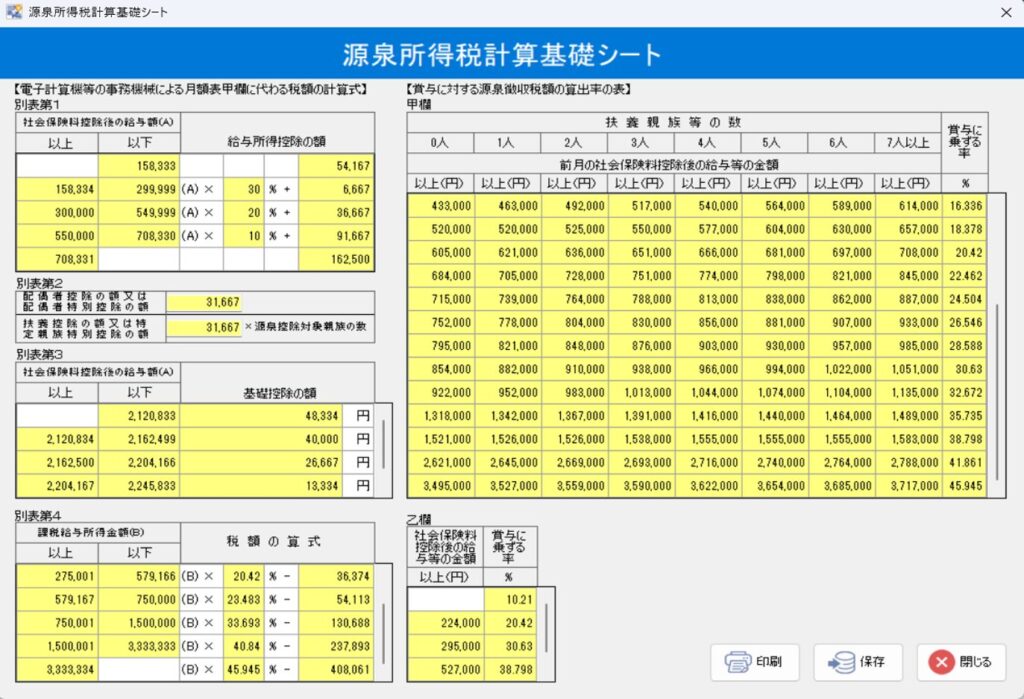 資料「令和8年分 源泉徴収税額表」に記載されている「月額表の甲欄を適用する給与等に対する源泉徴収税額の電算機計算の特例」に基づき変更。