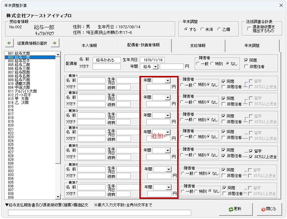(1)[従業員登録]に入力項目「特定親族数」を追加